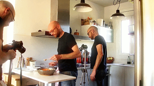 ¡Hola! El lunes publicaré la receta. De momento, os dejo con el making-of. No es completo, sólo de la grabación. La gente de Sony me ha dejado un par de cámaras, así que he podido dejar una grabando mientras hacía la receta.