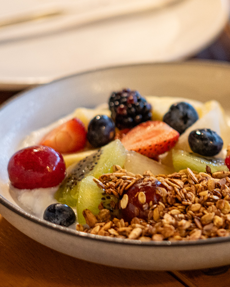 Bol de yogur con granola artesana y fruta del Hotel Empordà