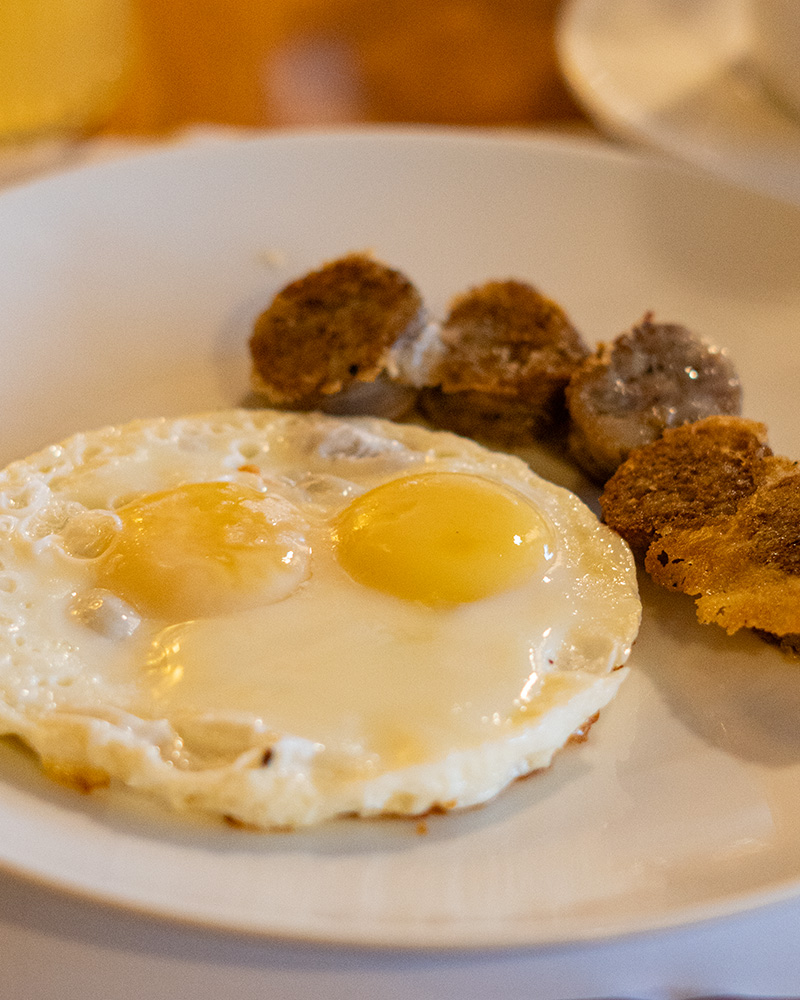 Lo primero es el horario, en el Hotel Empordà es de 7:30 a 12:00, eliges cuatro platos de una selección de una carta con más de 40, con algunos como el bol de yogur con granola artesana y fruta, los huevos fritos que puedes acompañar de botifarra del perol, panceta ahumada o espinacas a la catalana, el pan de tramuntana con tomate y anchoas en aceite o el sándwich mixto del Motel. Y a la mesa se acerca todo un Jaume Subirós, protagonsita de la historia gastronómica del país, a ver si está todo a tu gusto. Esto sí es lujo. Os dejo aquí la impresionante carta: