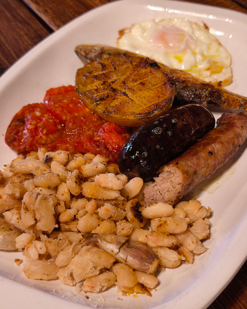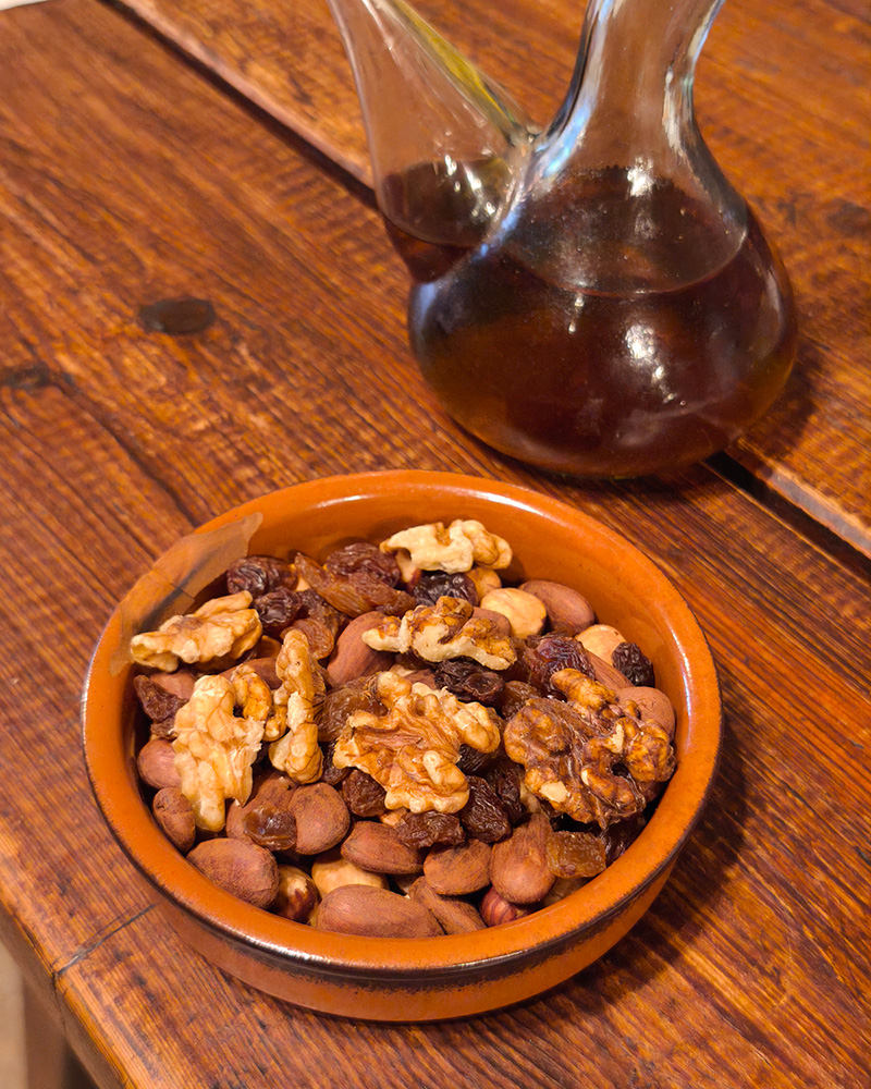 Una de mis experiencias preferidas es ganarme el pan con el sudor de la frente. Pero no trabajando, que eso no dignifica a nadie. Dando un paseo previo, subiendo para encontrarme en la cima con un restaurante, como en la Ermita de Puigcerver, donde te esperan las brasas de Mònica y Pere. Por el camino puede coger romero y tomillo para el arroz del domingo. Y después, puedes estar atento a los detalles, como que el aceite de oliva virgen extra y el vinagre sean de la cooperativa local. Y después una carta flexible, en el plato puedes pedir la combinación que quieras: butifarra, panceta, morcilla, arenque, cordero, manitas, escalivada, judías, patatas al caliu, huevo y tomate. Y encima puedo acabar con mi postre preferido, el músico.