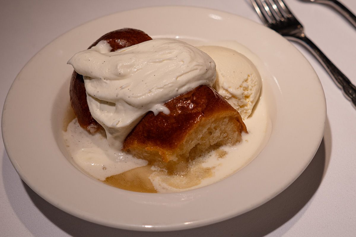 De postre un clásico: el Baba caliente al ron con nata y helado de vainilla. Espectacular.