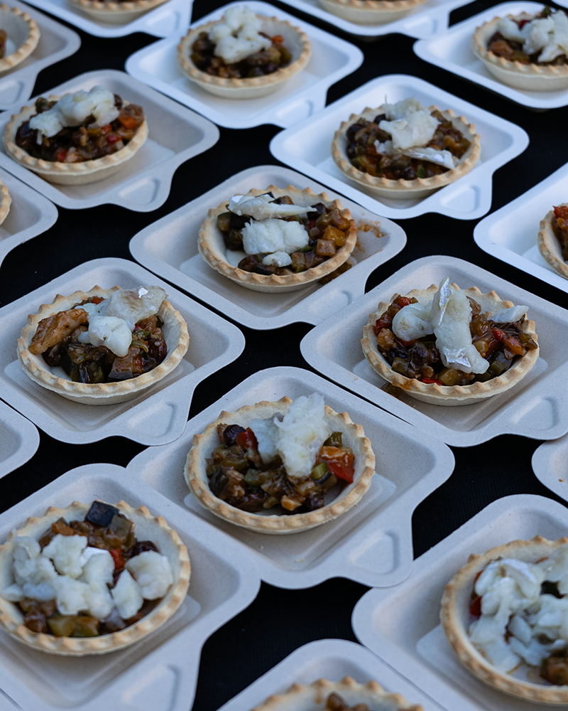 Y, como toca, había algo para acompañar. El chef Francesc Blanch, de Deviteca, ha servido primero un hummus de alubias del ganxet mezclado con berenjena ahumada y terminado con una sardina ahumada; después, una coca de calçots, ligados con un poco de sobrasada y coronados con un allioli “negat” y algo de fuet seco; y, para acabar, una sanfaina salteada con bacalao y unas pasas. Hemos comido bien y bebido mejor.
