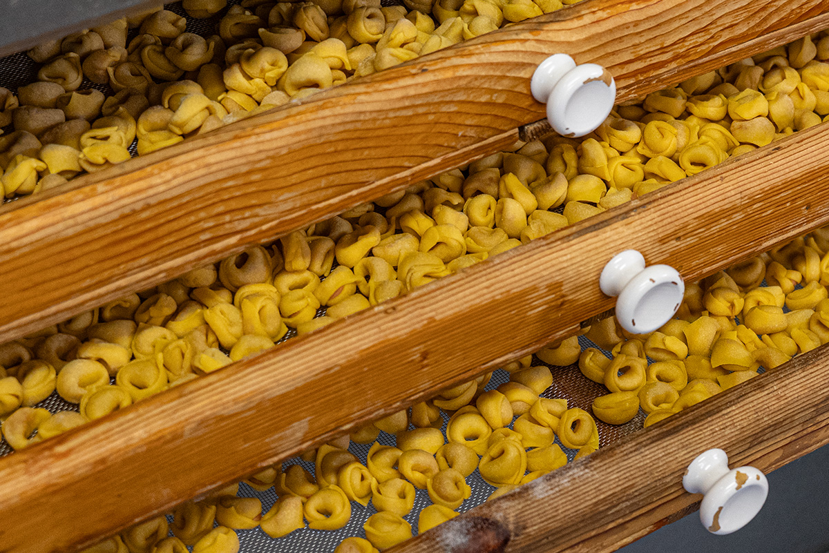 Regentado por las hermanas Daniela y Monica, Le Sfogline es un obrador de referencia. Verlas elaborar 18 kilos de tortellini a mano es un espectáculo de oficio. Masa de harina y huevo con un relleno preciso: lomo de cerdo, jamón, mortadela, Parmigiano-Reggiano y nuez moscada.