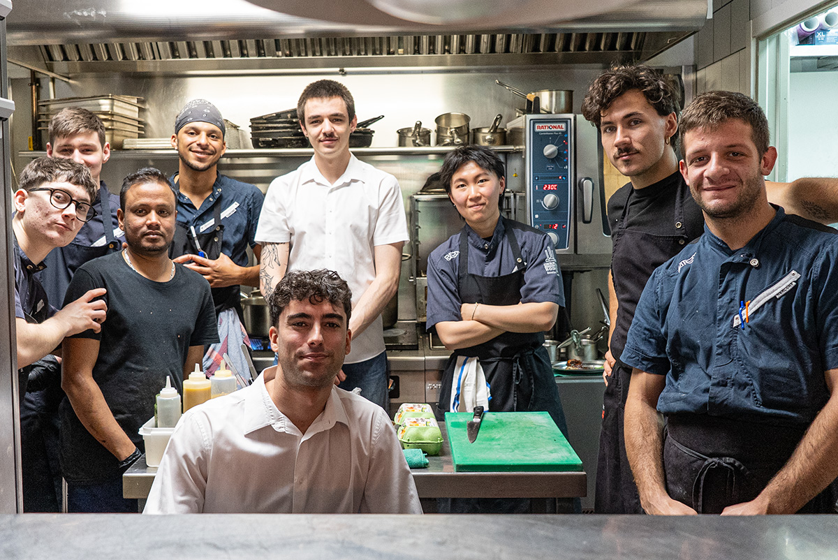 Manu Núñez abrió Besta en 2021 y su éxito le animó a abrir un segundo restaurante solo año y medio después. Estamos en Batea, una marisquería que le da una vuelta al concepto clásico para hacerlo más informal, más vivo, más dependiente del mar de cada día.