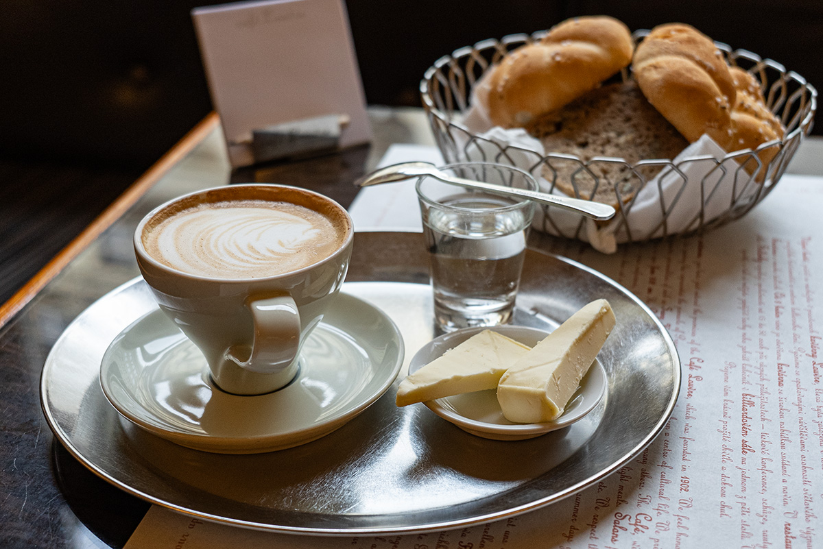 Evidentemente, se ha convertido en un atractivo turístico, pero conserva la clientela local, ahí están los periódicos, que siempre son una buena señal. La carta tiene concesiones a los gustos internacionales, que curiosamente no acaban de representar a nadie, también tiene lo que llaman un desayuno checo y salchichas con mostaza y rábano picante fresco, una buena opción si vas a estar pateando la ciudad.