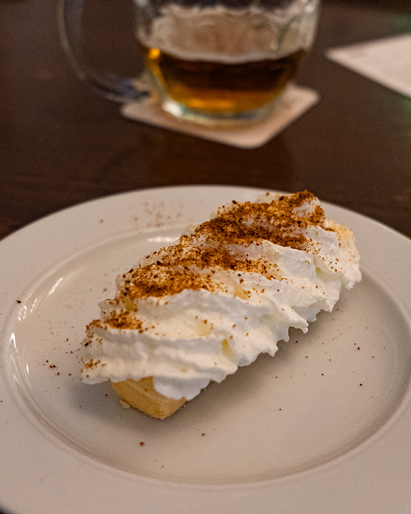 En Automat Matuška me animé con el tartar, uno de los platos más representados en los restaurantes tradicionales checos. Este tenía su punto original: carne salpimentada, cebollino y una mayonesa con aguardiente elaborado a partir de cerveza, típico de Bohemia. Tiene todo el sentido que la mayoría de platos estén pensados para maridar con cerveza.