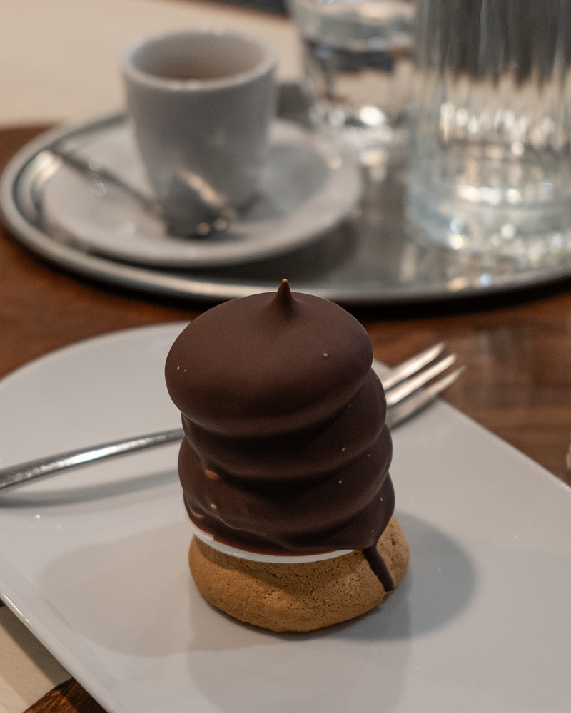 Volvemos a cruzar la calle para entrar en la Pastelería Skála. Su fundador, Lukáš Skála, está considerado uno de los mejores pasteleros de la República. Probamos dos clásicos: el věneček, una pasta choux rellena de crema pastelera y cubierta con glaseado de fondant blanco, y el indián, una base de galleta con una gran espiral de nata bañada en chocolate negro.